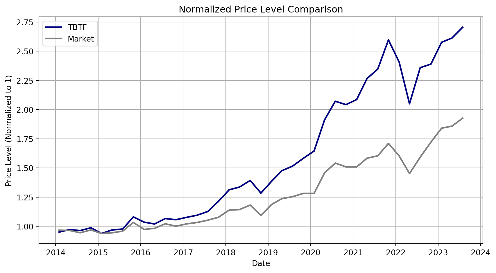 Price Level Comparison: TBTF vs. Market (Pre-2010 vs. Post-2010)