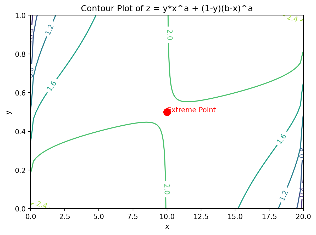 # Define functions u_1(x,y) = x^a * y^(1-a) and u_2(x,y) = (2-x)(2-y)
